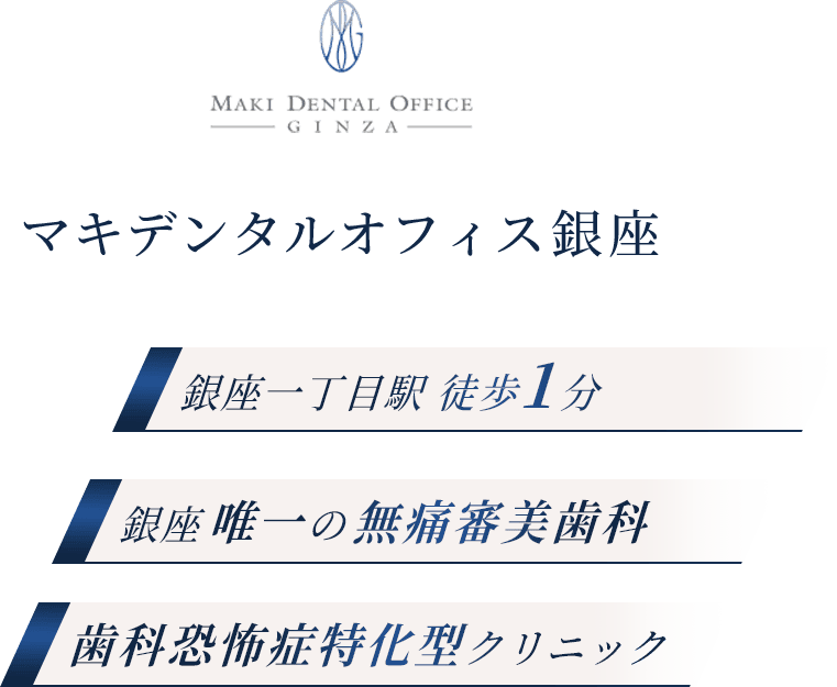 銀座の歯医者「マキデンタルオフィス銀座」は、銀座一丁目駅前エリアにあり、リラックスできる環境と専門的な治療で、患者様の笑顔と健康をサポートします。 歯科恐怖症でなかなか歯科医院に行くことができなかった方にも安心・安全な治療の提供に尽力いたします。