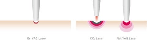 Er:YAGレーザーは、水を含んだ生体組織に対する蒸散能力が高く、表層にのみ反応が起こり、熱の発生が微小なため、痛みが非常に少ないという特徴があります。