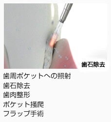 従来より歯科で用いられているレーザーにはCO2 Laser (炭酸ガスレーザー)や、Nd : YAG Laser (ネオジウムヤグレーザー) というものがあります。