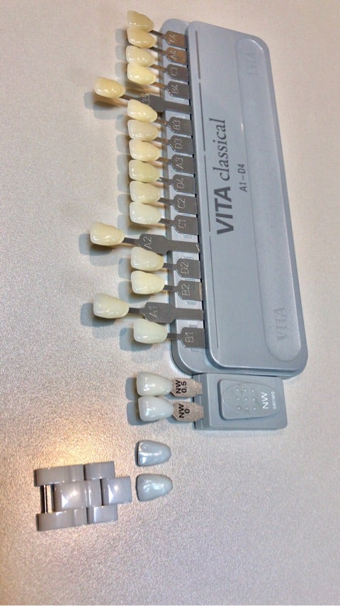 実際の白さのイメージですが、ホワイトニング用のシェードガイドで比較しました。