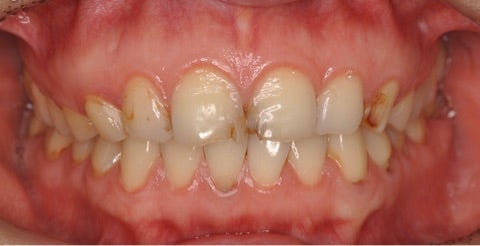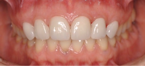 前歯の一部が欠損し、ブリッジとなっていますが、可能な限り目立たないように仕上げることが出来ました。