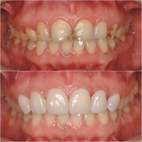 今回は作り物の様でなく自然かつ綺麗に歯を作成したいとの事から、技工士が立ち合い、患者様の細かい要望も伺い対応する事が出来るジルコニアセラミッククラウンプレミアム¥220,000-(込)/本での治療を(上の歯8本を)行いました。