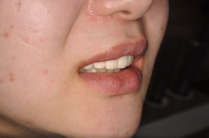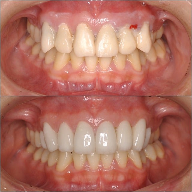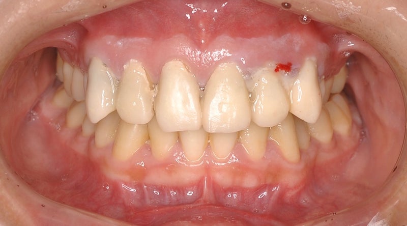 審美不良の仮歯による歯肉の炎症、そして1時間で8本の歯を一気に削るという無理な治療によって