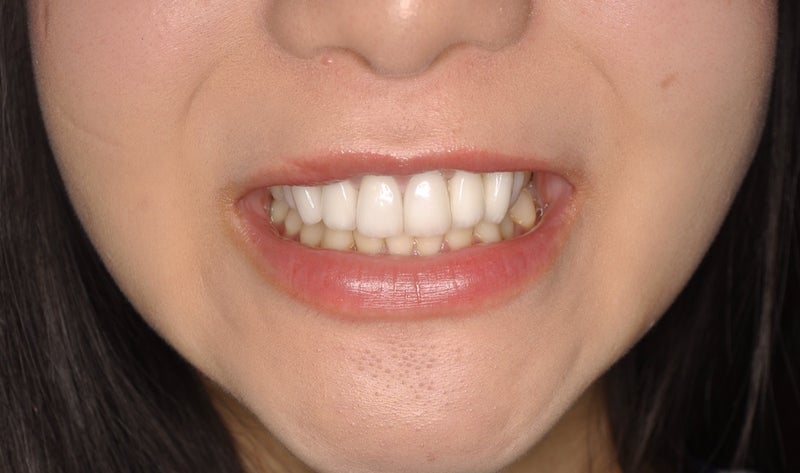 ▶︎患者様は前の医院で上だけでなく下の歯8本のセラミックも進められていたとの事でした。