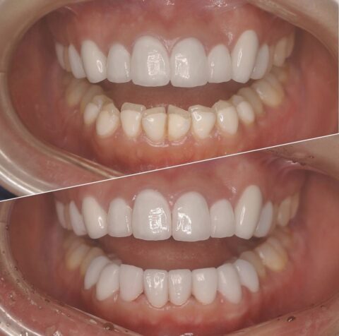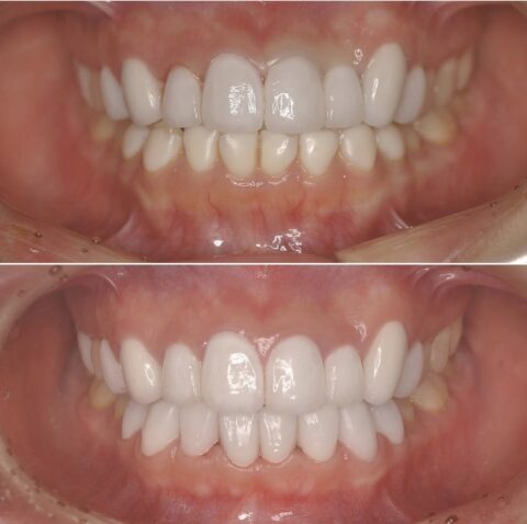 本数が多かったので、患者様には無痛リラクゼーション治療を併用して快適に治療をお受け頂き、上下綺麗になり統一感が出たことに大変喜んでいただけました。