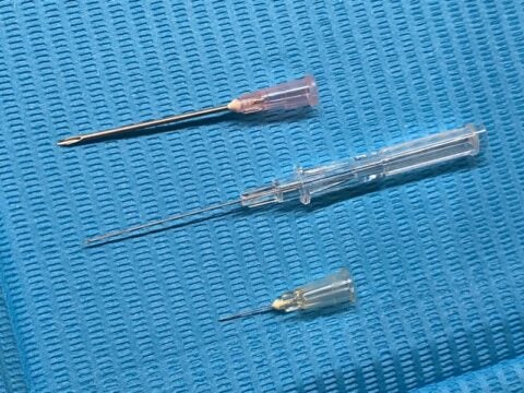 ・ 通常の18ゲージ注射針 (直径1.2mm)